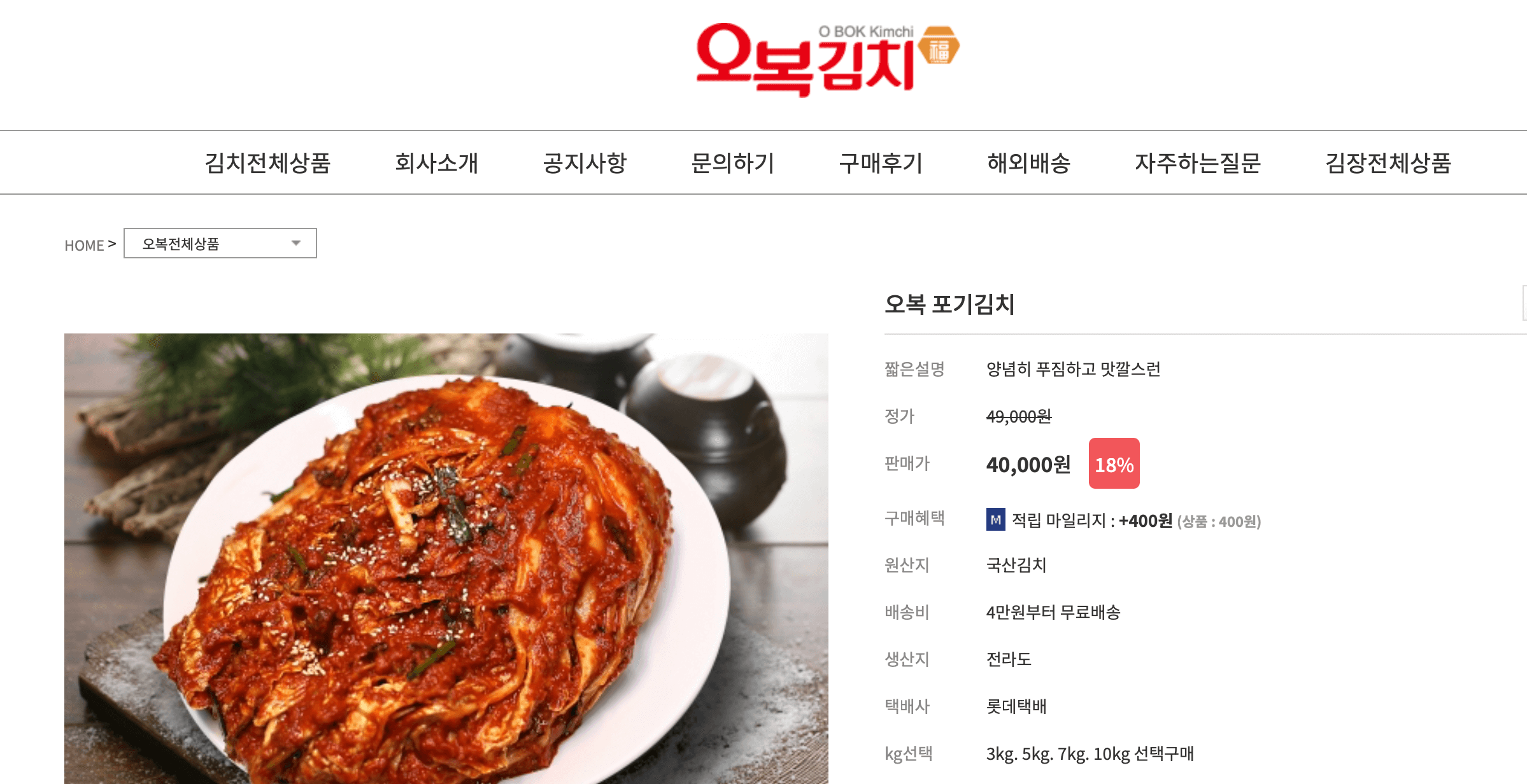 오복김치는 100% 국산 재료만 사용하며, 조미료를 첨가하지 않아 건강한 맛을 원하는 분들께 인기가 있습니다. 김치 본연의 맛을 중요하게 생각하는 브랜드로, 담백하면서도 깊은 맛이 나도록 신경 쓴 것이 특징입니다. 고객들의 재구매율이 높아 신뢰할 수 있는 브랜드로 평가받고 있습니다.