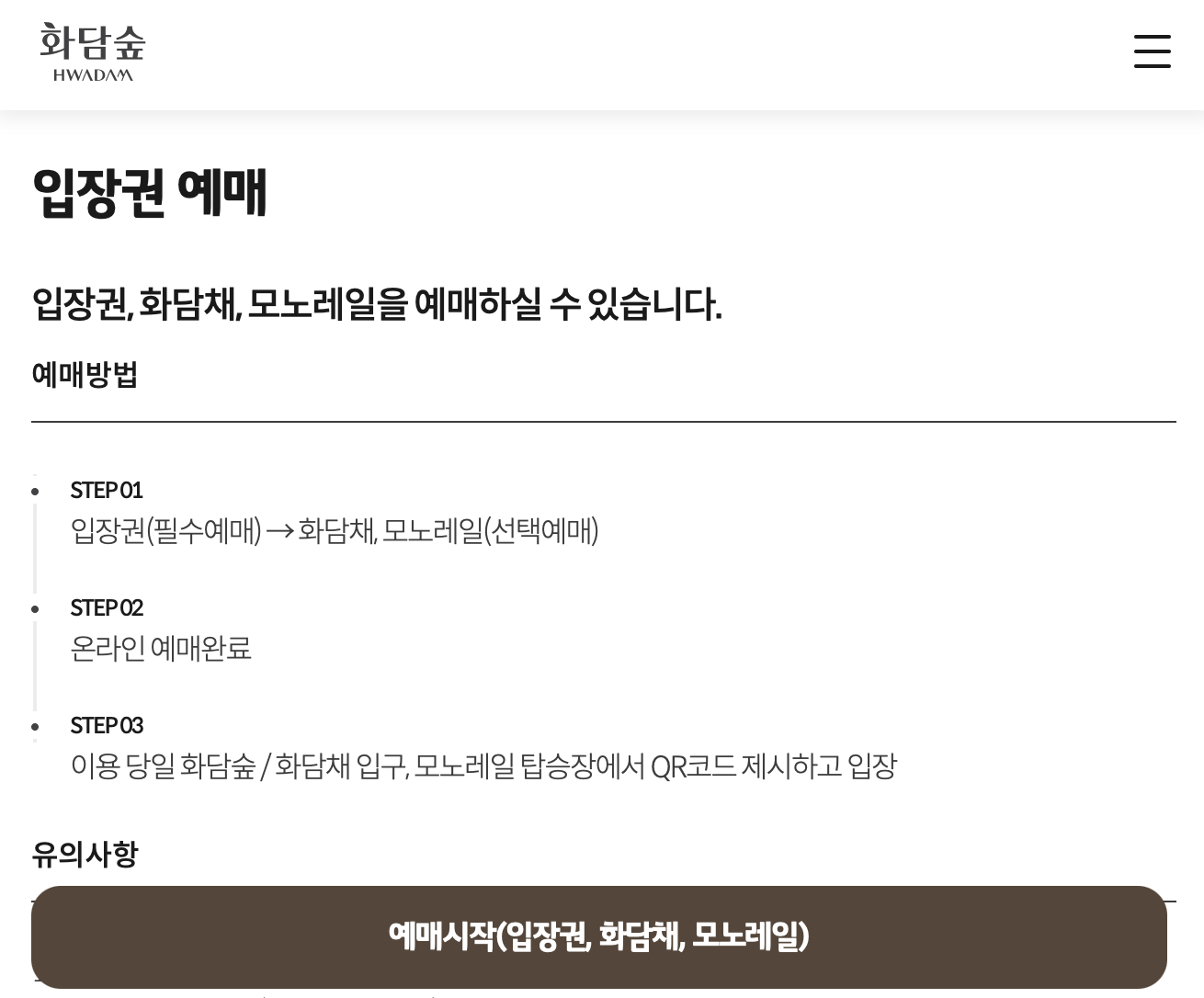 모노레일 예약은 온라인으로 간편하게 진행할 수 있습니다. 예약 사이트에 접속 후, 원하는 날짜와 시간을 선택한 후 필요한 인원 수를 입력하면 됩니다. 예약이 완료되면 QR코드가 발송됩니다. 현장에서는 이 QR코드를 제시하여 입장이 가능합니다. 예약 방법에 대한 자세한 내용은 화담숲 공식 웹사이트에서 확인할 수 있습니다.